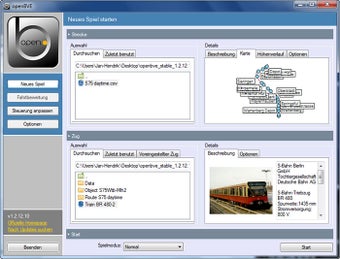 Installationshinweis:Um openBVE erfolgreich zu starten, muss man Folgendes in das Installationsverzeichnis entpacken: Tao, SDL und OpenAL. Außerdem setzt das Spiel ein installiertes .NET Framework 2.0 oder besser voraus. Darüber hinaus muss man mindestens eine Strecke und einen Zug herunterladen und installieren. Eine Liste findet man an dieser Stelle. Bei Installations- und Startproblemen empfiehlt sich ein Blick auf folgende Seiten des Herstellers: Installationshinweise, FAQ.